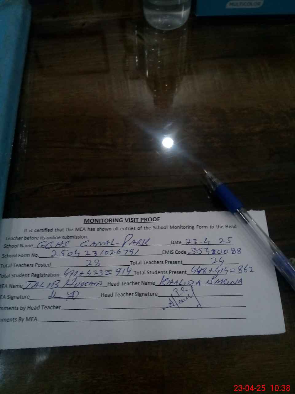 | EMIS Code: 35420088 | Name of School: GGHS CANAL PARK MURIDKE | |||
