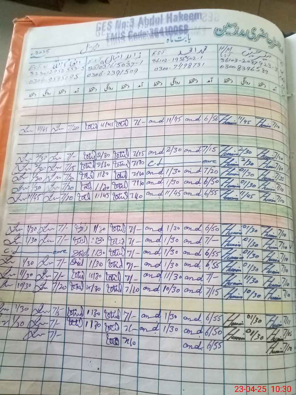 | District: KHANEWAL | Tehsil: KABIRWALA | Markaz: ABDUL HAKIM - MALE | Level: Middle | |