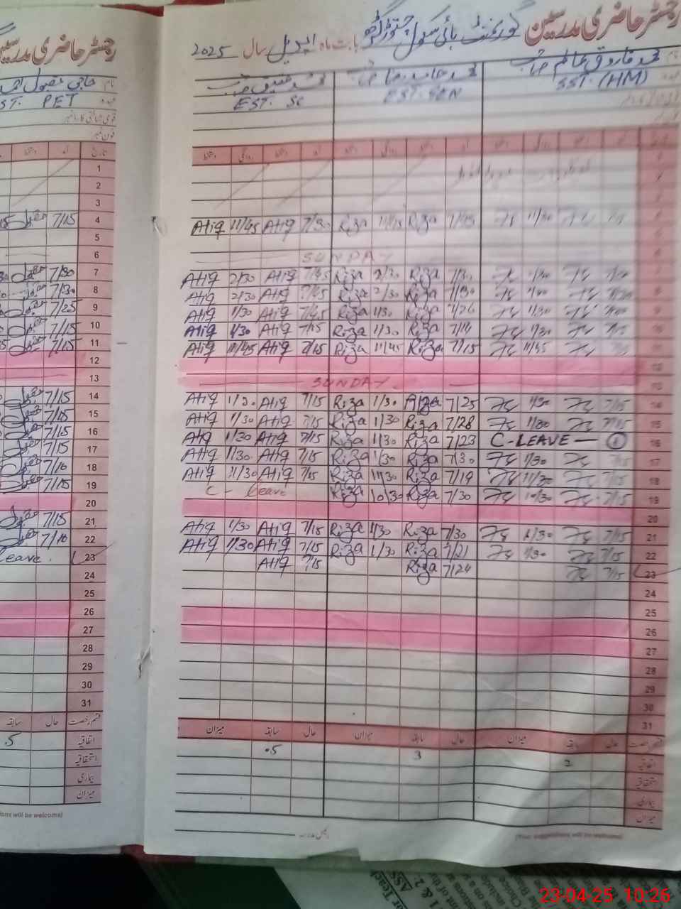 | CNIC | Full Name | Designation | R/C | Absence During Last Calender Month |