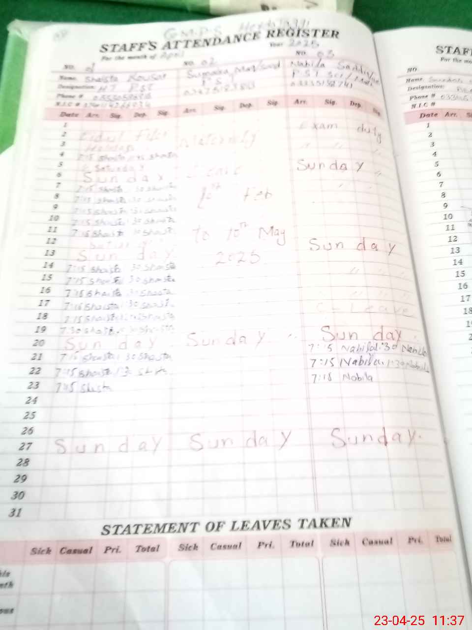 | 37**** | Su**** Ma**** | PST | Regular | 0 | 0 | 0 | 0 | 0 | 0 | 0 | 0 | 0 | Maternity |