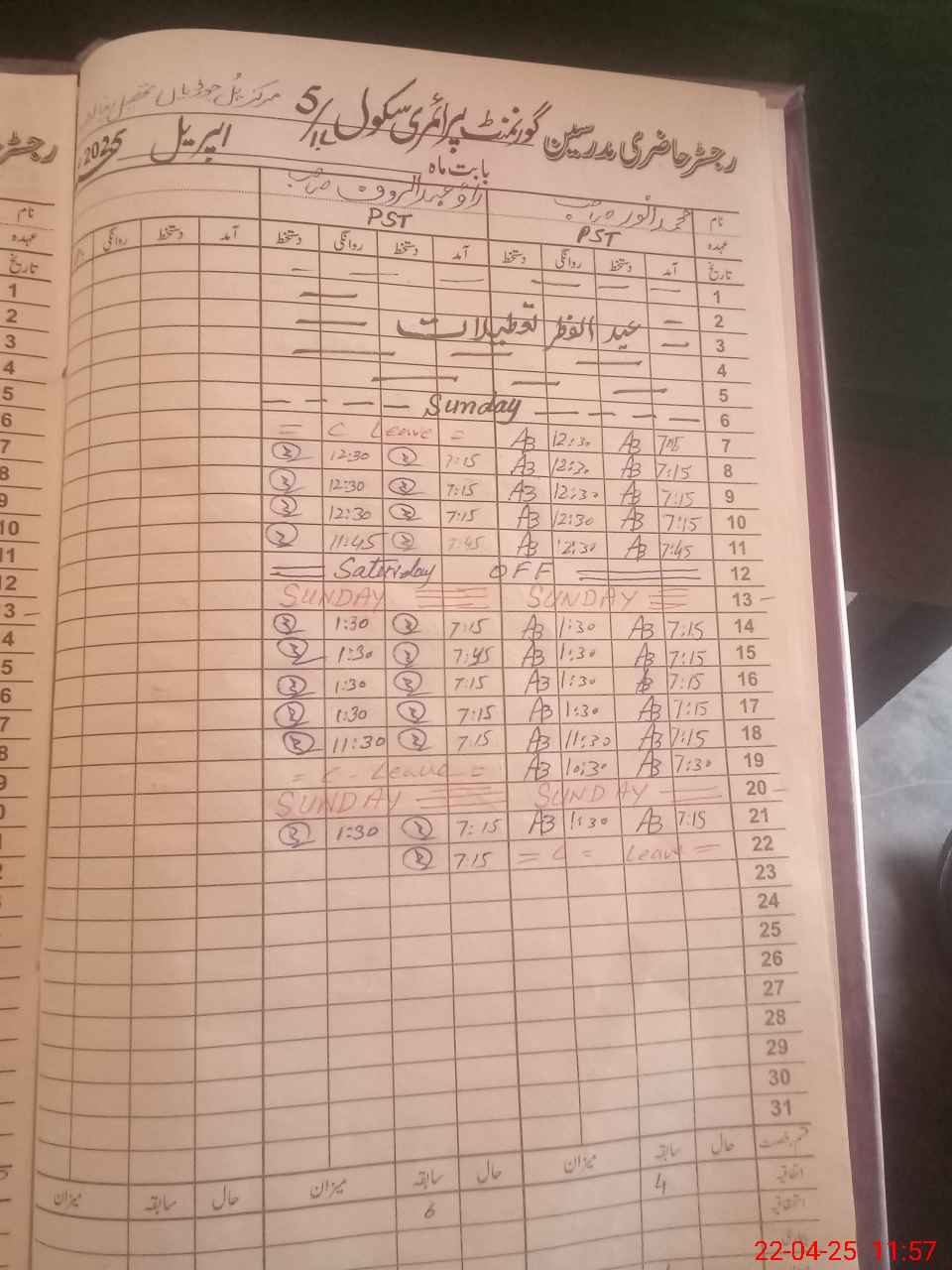 | 35**** | An**** Al**** | PST | Regular | 2 | 0 | 0 | 0 | 0 | 0 | 0 | 0 | 2 | Casual |