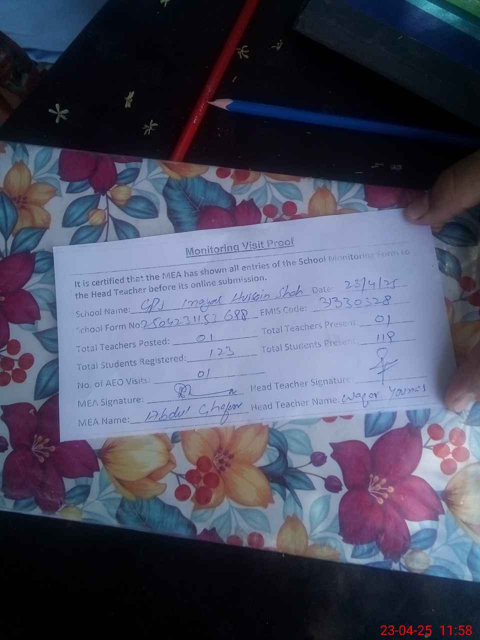 | EMIS Code: 31330328 | Name of School: GPS INAYAT HUSSIAN SHAH | |||