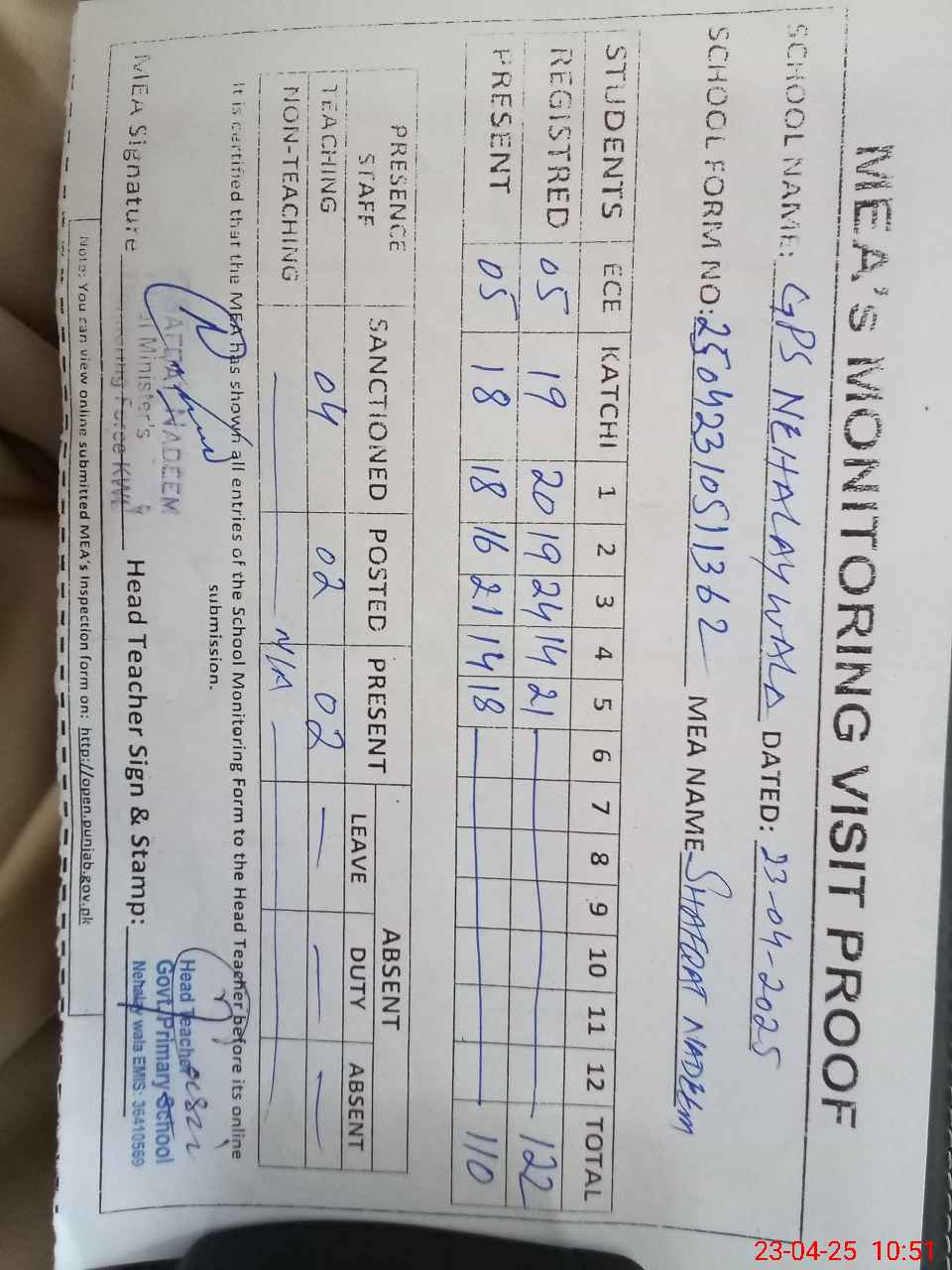 | EMIS Code: 36410569 | Name of School: GPS NEHALAY WALA, ABDUL HAKIM | |||