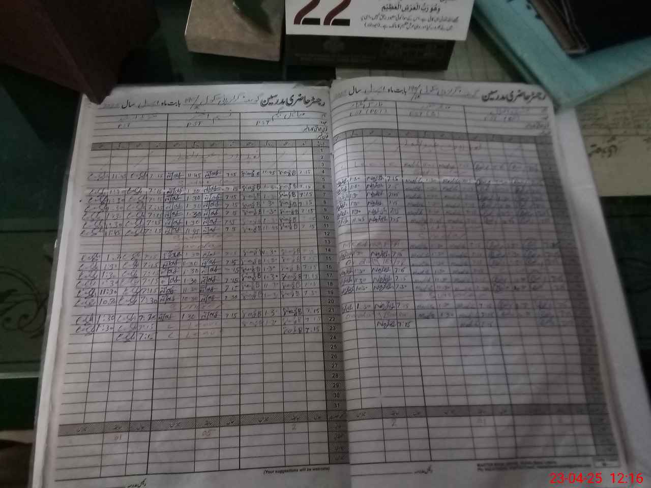 | CNIC | Full Name | Designation | R/C | Absence During Last Calender Month |