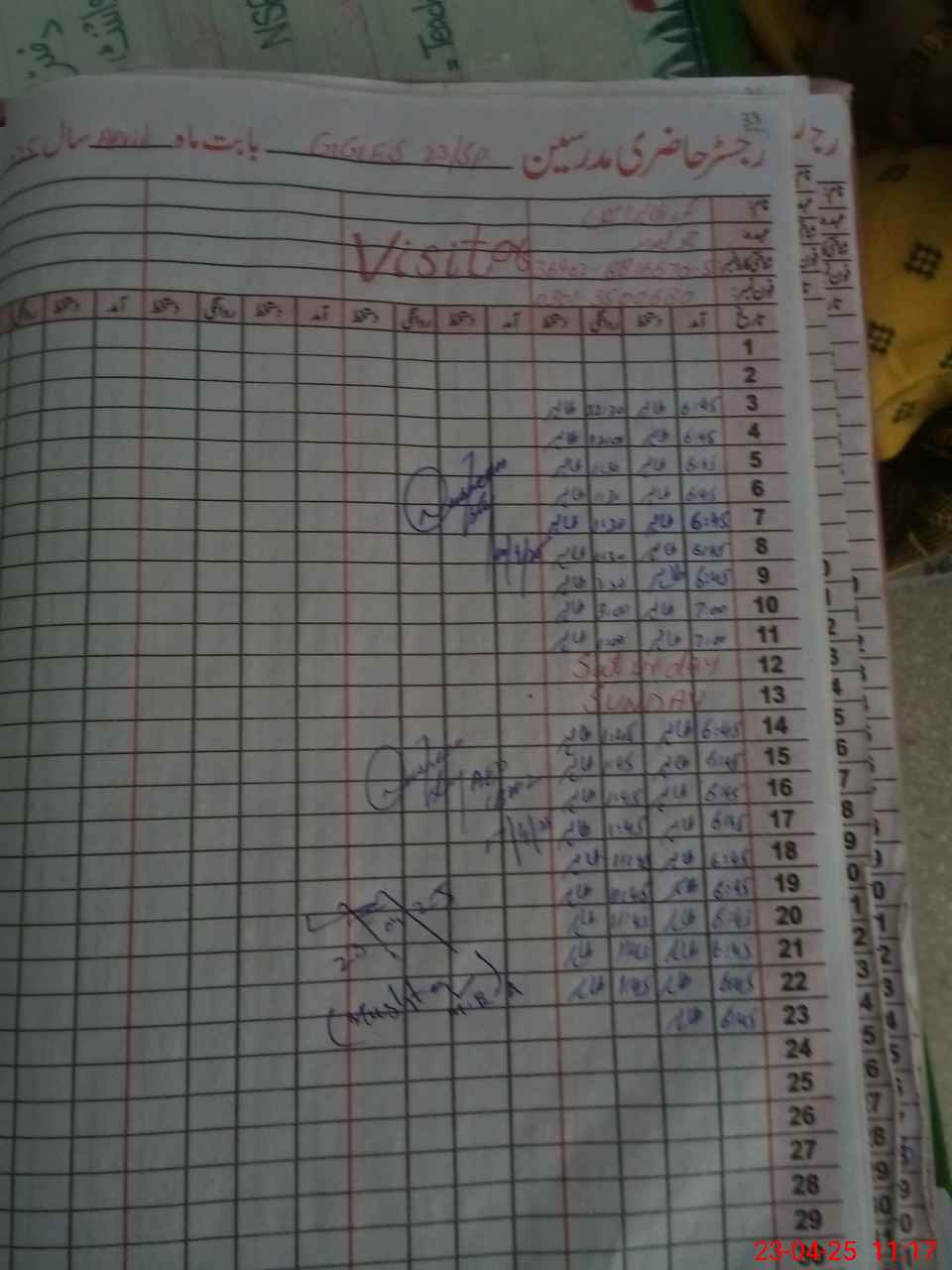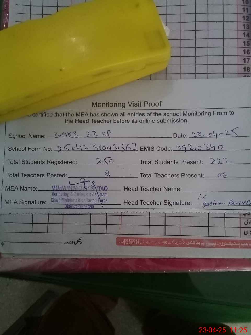| Attendance Register | Head Teacher | MEA with School | Visit Proof |
