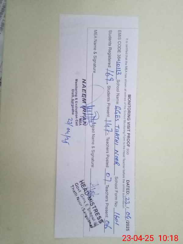 | EMIS Code: 38410113 | Name of School: GGES THATTI NOOR | |||