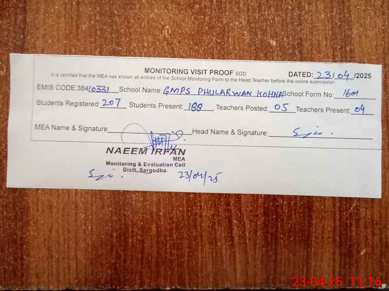 | EMIS Code: 38410331 | Name of School: GMPS PHULARWAN KOHNA | |||