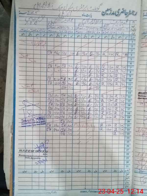 | Name: Mu**** Ar**** Designation: (School Headmaster's/Headmistress's) ESE (Arts) Phone/Cell Number: 03**** |