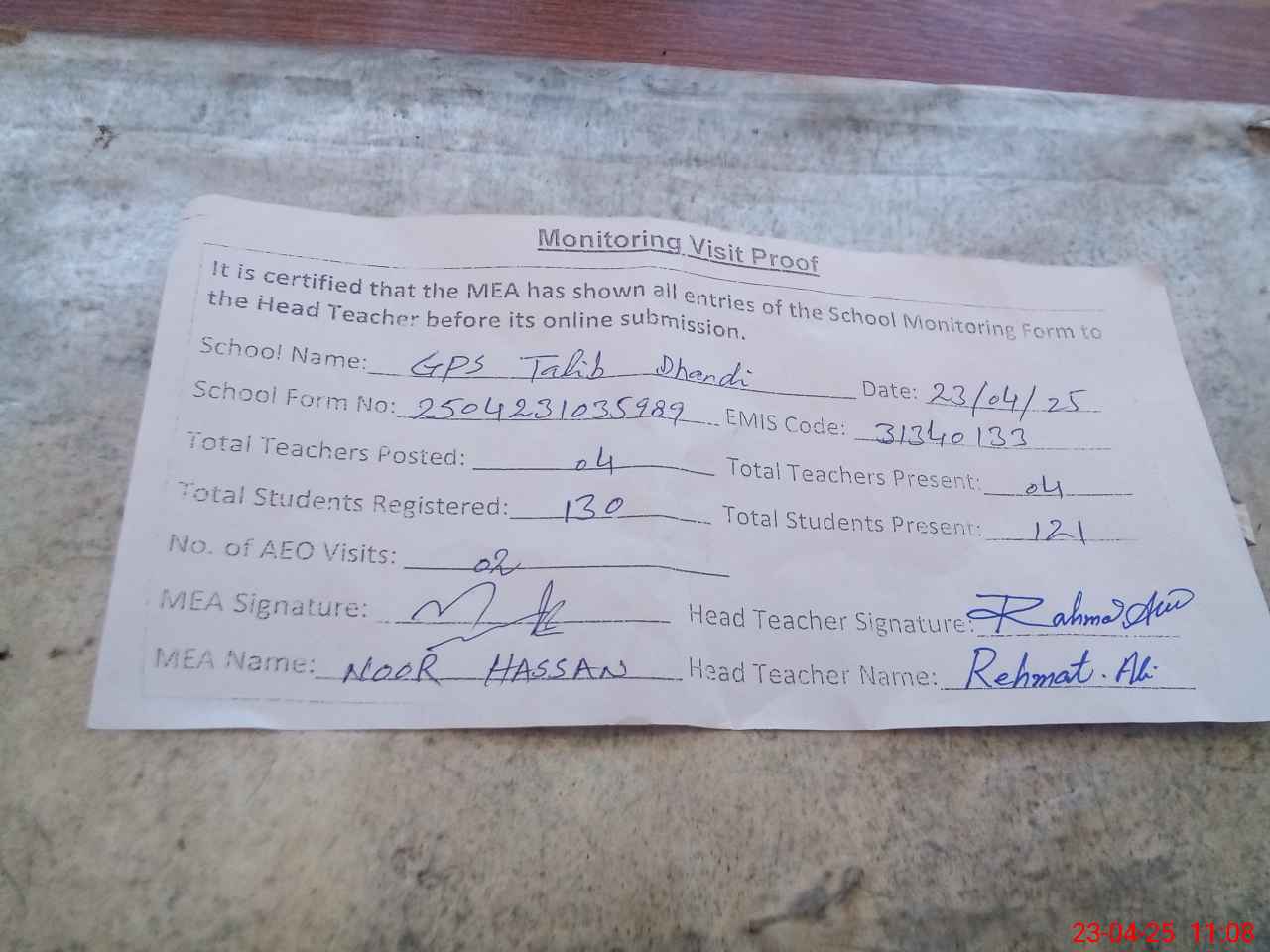 | EMIS Code: 31340133 | Name of School: GPS TALIB DHANDI | |||