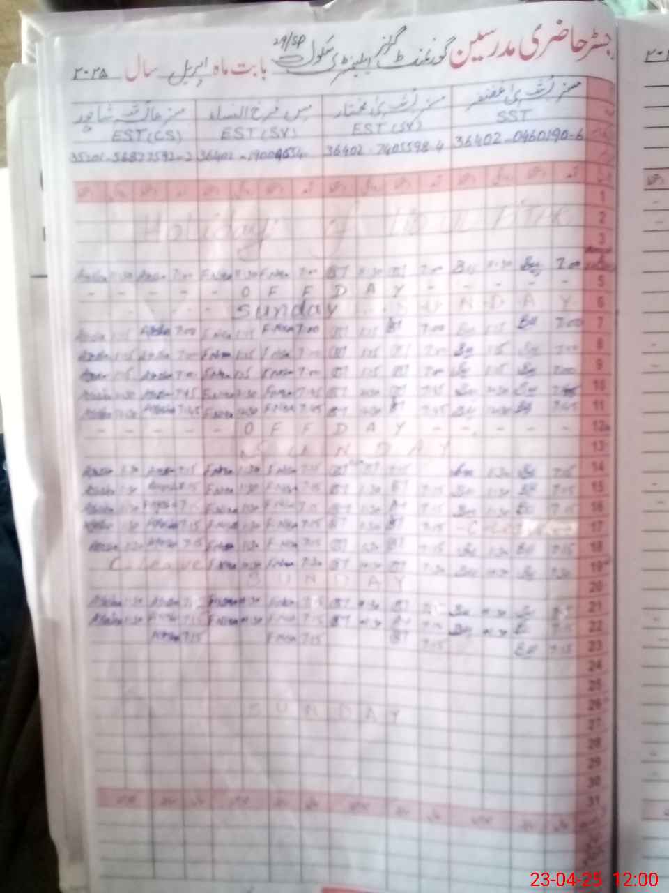 | CNIC | Full Name | Designation | R/C | Absence During Last Calender Month |