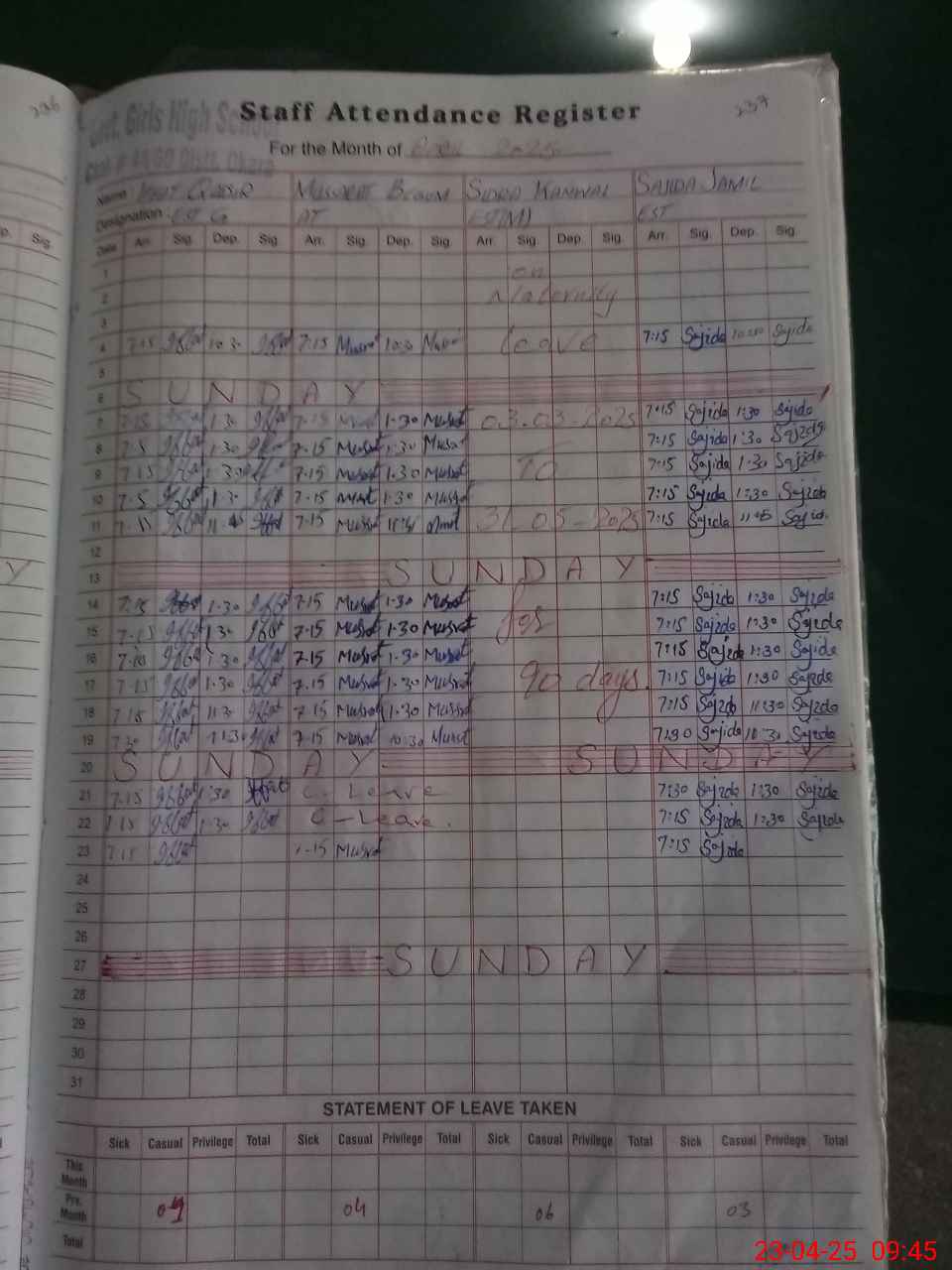 | 35**** | Mu**** Ni**** | CHOKIDAR | Regular | 3 | 0 | 0 | 0 | 0 | 0 | 0 | 0 | 3 | Casual |