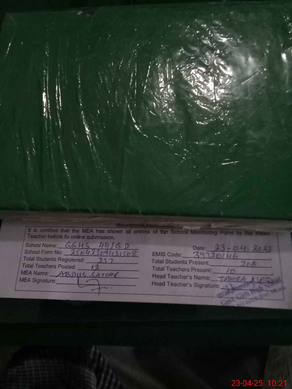 | EMIS Code: 39320146 | Name of School: GGHS CHAK NO. 44/G.D | |||