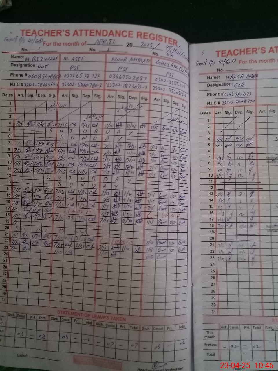 | Name: Gh**** Qa**** Designation: (School Headmaster's/Headmistress's) PST Phone/Cell Number: 03**** |