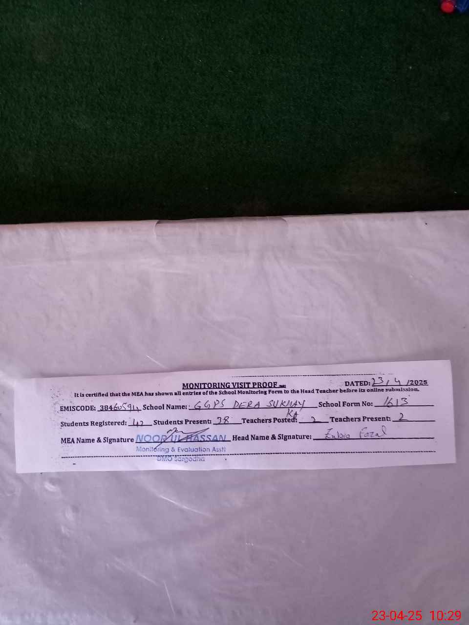 | EMIS Code: 38460594 | Name of School: GGPS DERA SUKH-E-KA | |||