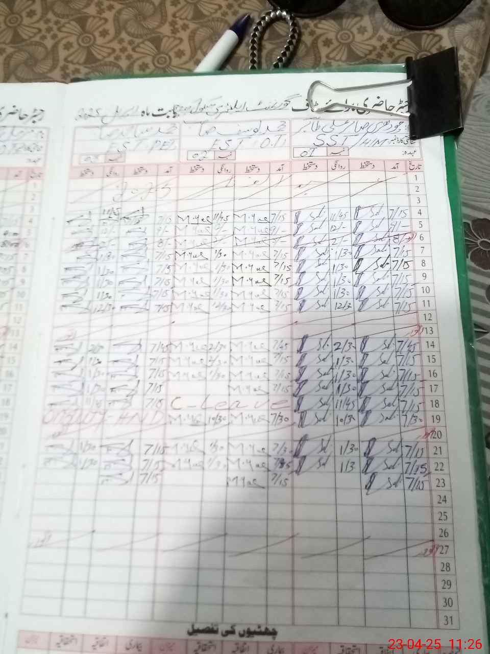 | CNIC | Full Name | Designation | R/C | Absence During Last Calender Month |