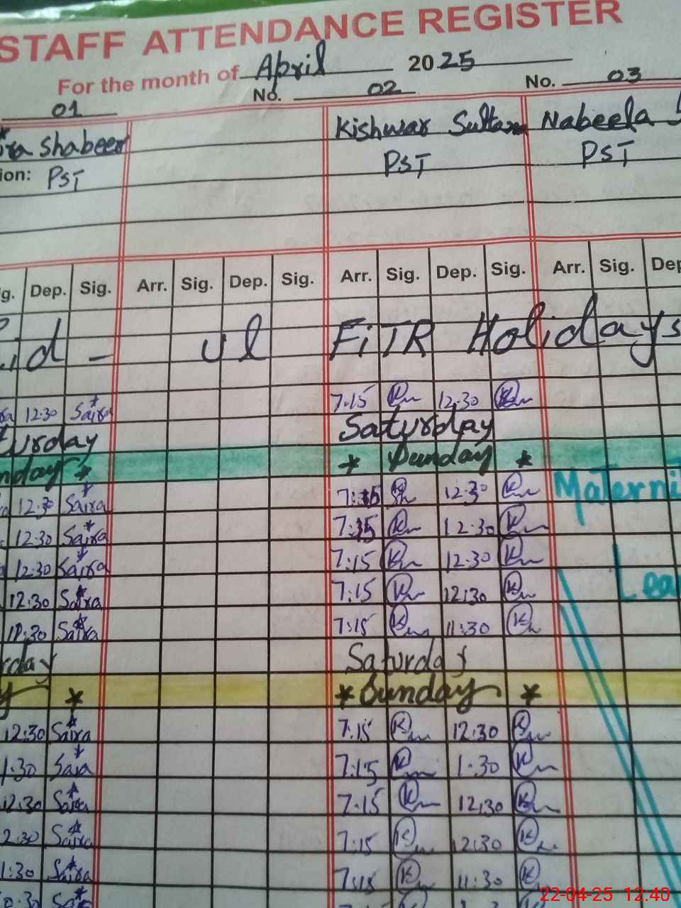 | 61**** | Na**** Iq**** | PST | Regular | 21 | 0 | 0 | 21 | 0 | 0 | 0 | 0 | 0 | Maternity |