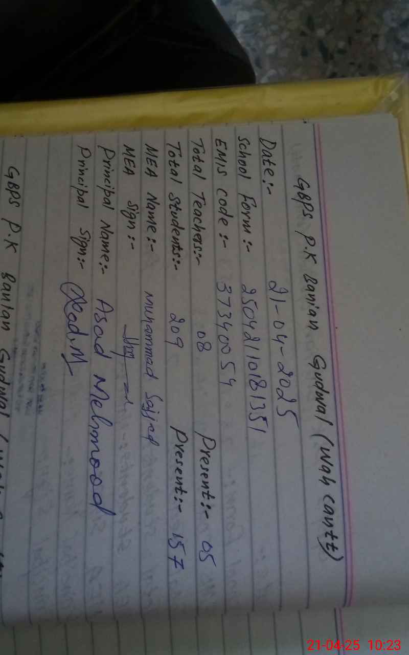 | EMIS Code: 37340054 | Name of School: GPS PIND KAMALA BANIAN | |||