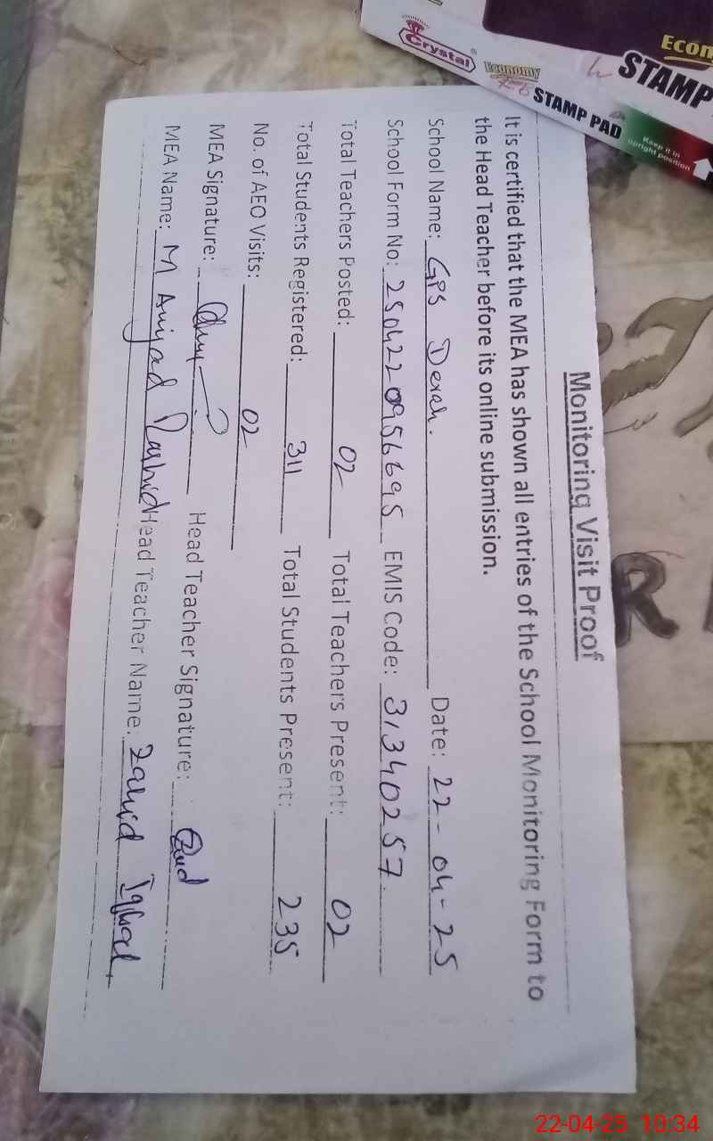 | EMIS Code: 31340257 | Name of School: GPS DERAH | |||