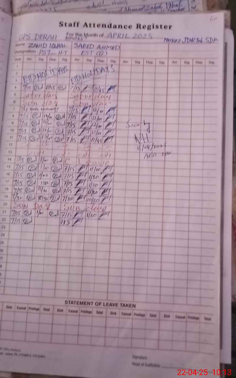 | Name: Za**** Iq**** Designation: (School Headmaster's/Headmistress's) PST Phone/Cell Number: 03**** |