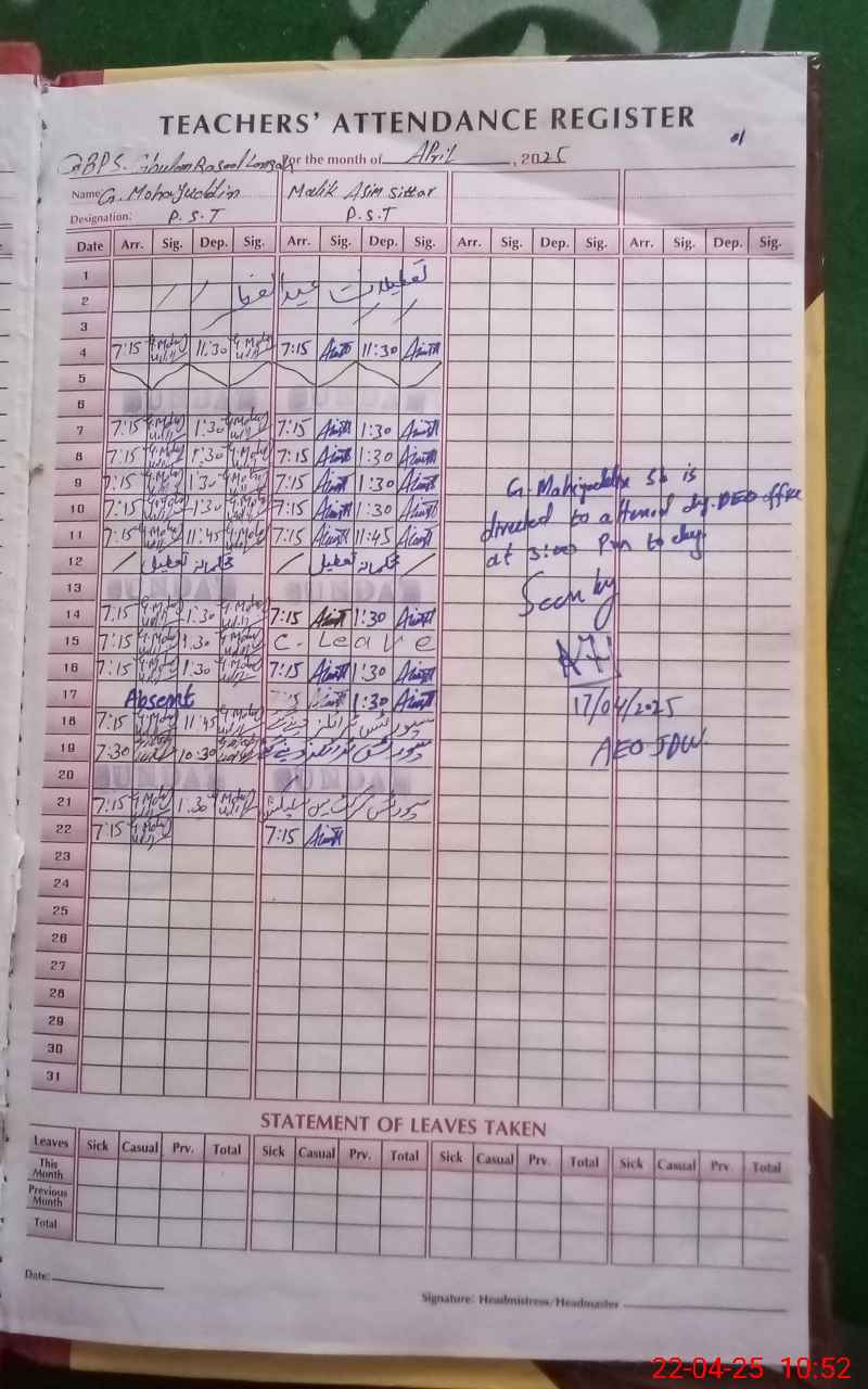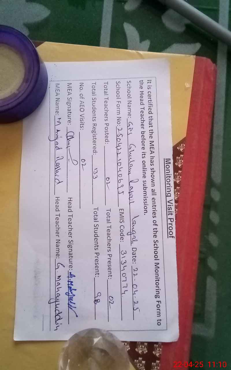 | EMIS Code: 31340774 | Name of School: GPS GHULAM RASOOL LANGAH | |||