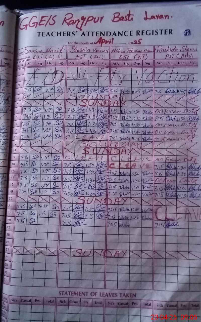| EMIS Code: 31340610 | Name of School: GGES BASTI RANG PUR LARAN | |||