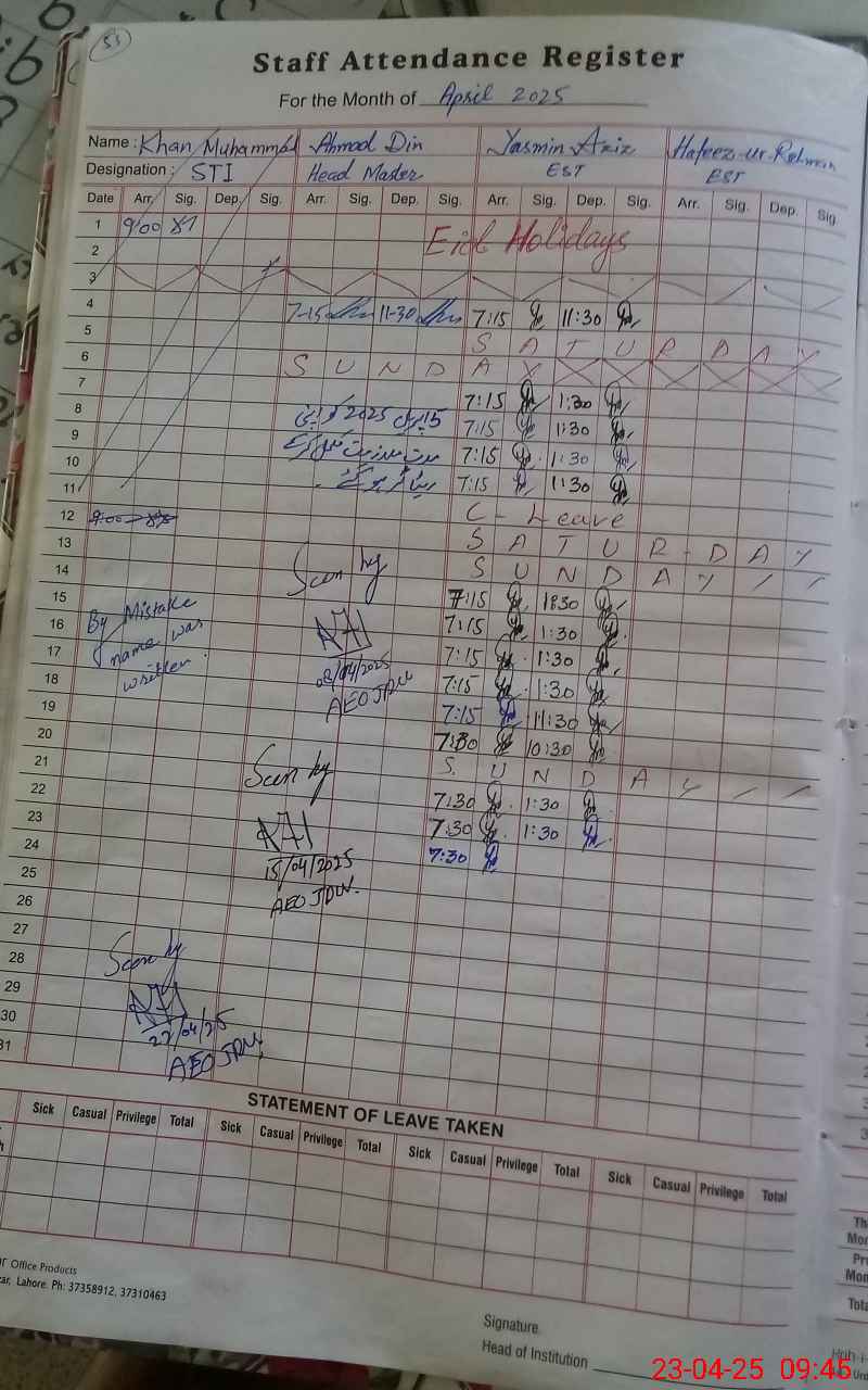 | Name: Ya**** Az**** Designation: (School Headmaster's/Headmistress's) Est Phone/Cell Number: 03**** |