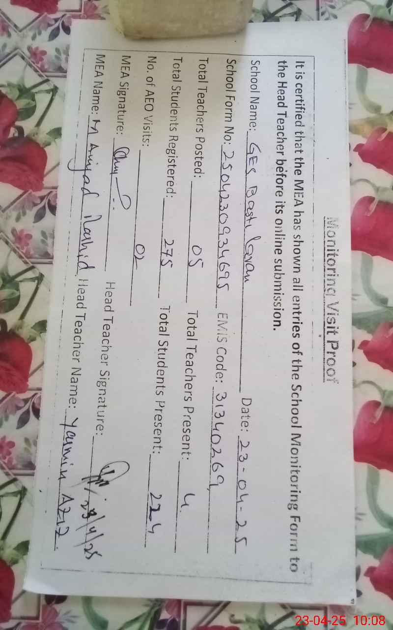 | EMIS Code: 31340269 | Name of School: GES BASTI LARAN | |||
