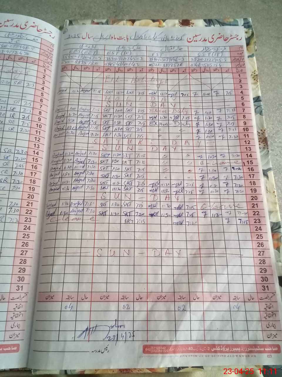 | Name: Mu**** Ah**** Designation: (School Headmaster's/Headmistress's) S H M Phone/Cell Number: 03**** |
