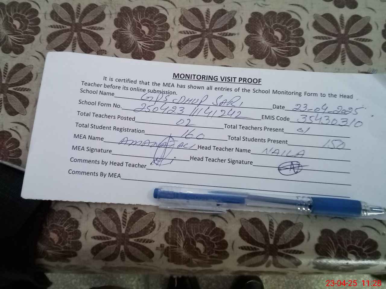 | EMIS Code: 35430310 | Name of School: GPS DHOOP SARI | |||