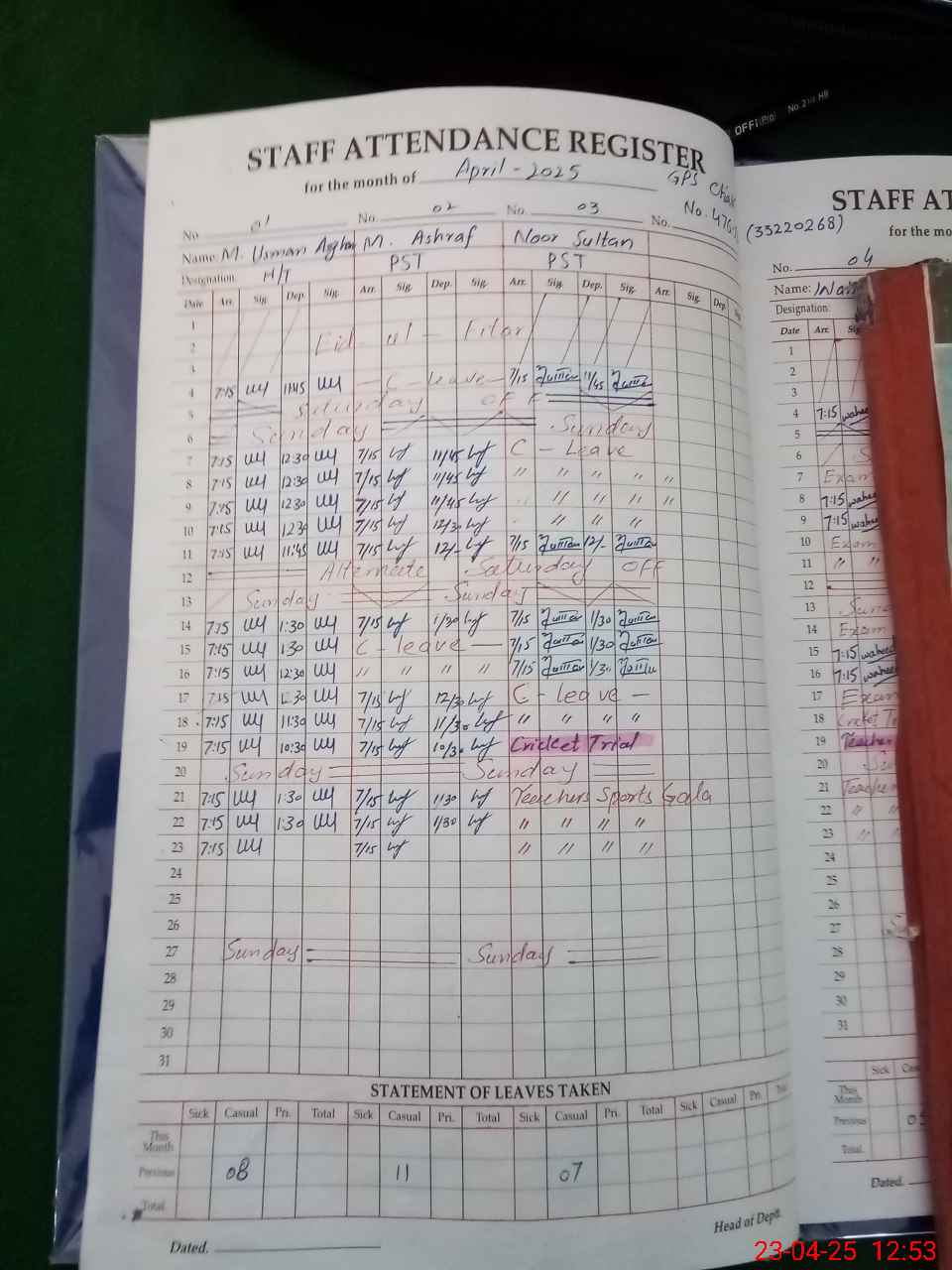 | 33**** | Wa**** As**** | 1 | 2 | 11 | 0 | 0 | 0 | 0 | 0 | 0 | 2 | Absent (Un-Authorized) | |