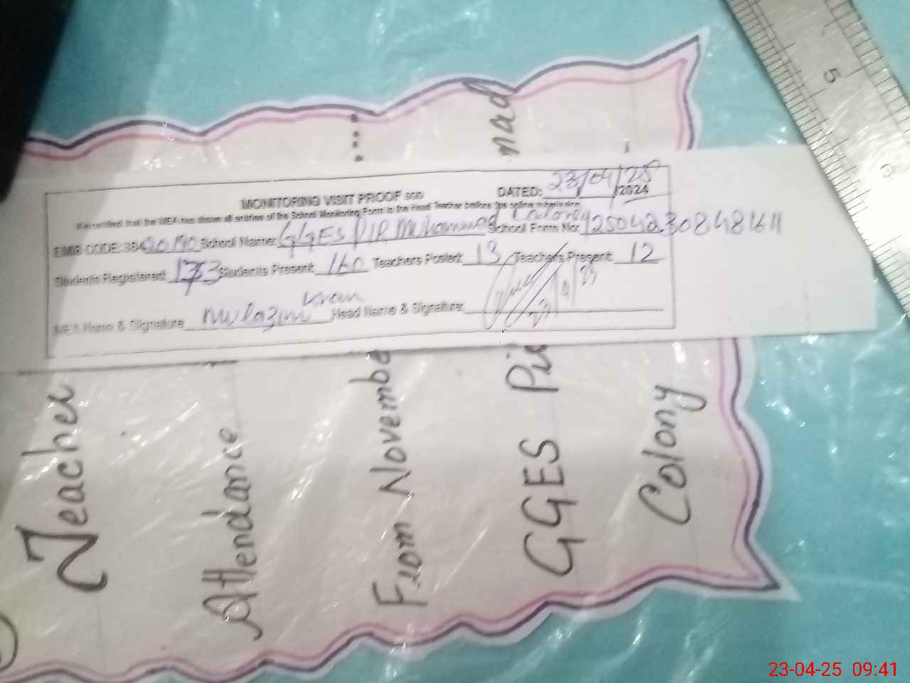 | Attendance Register | Head Teacher | MEA with School | Visit Proof |