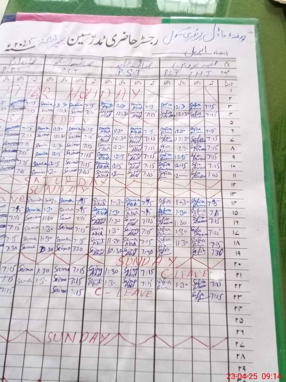| 31**** | Sa**** Ab**** | PST | Regular | 0 | 0 | 0 | 0 | 0 | 0 | 0 | 0 | 0 | Casual |