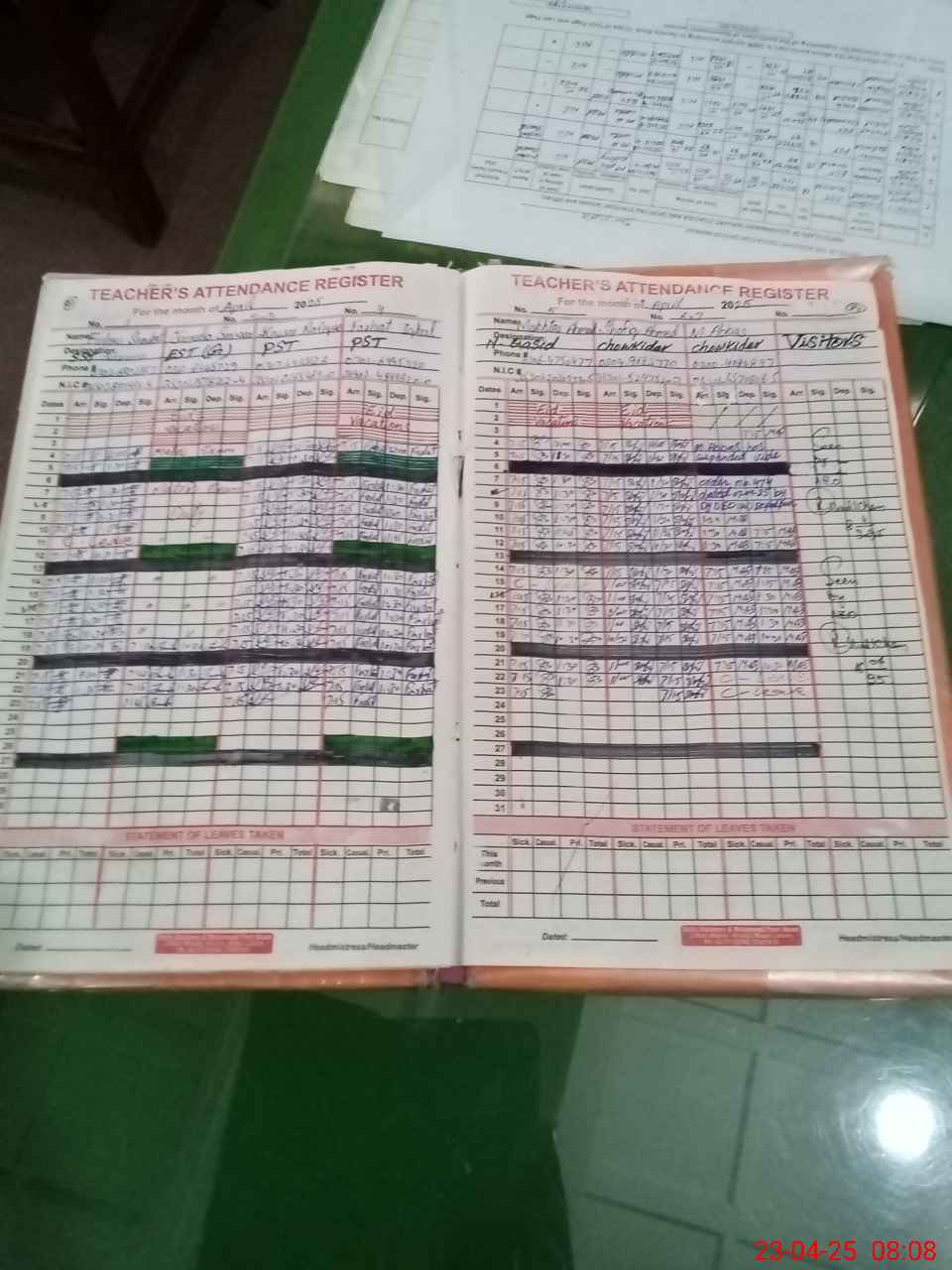 | Attendance Register | Head Teacher | MEA with School | Visit Proof |