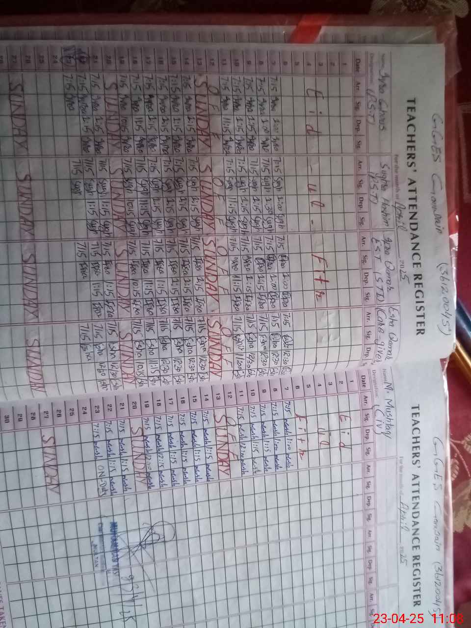 | CNIC | Full Name | Designation | R/C | Absence During Last Calender Month |
