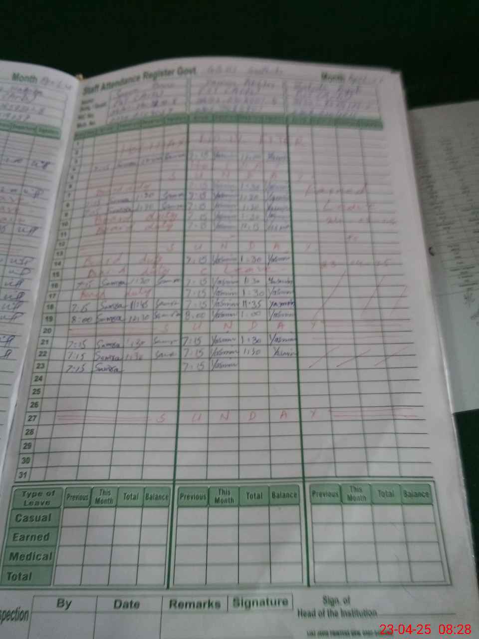 | Leave | Duty | Absent | Maternity | Medical | Ex- Pak |