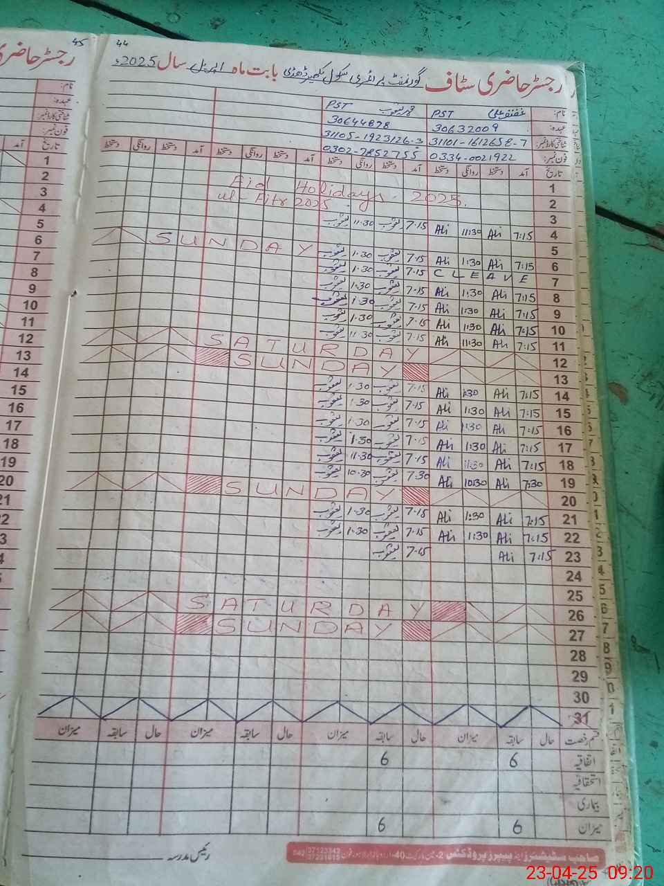 | Name: GH**** AL**** Designation: (School Headmaster's/Headmistress's) PST Phone/Cell Number: 03**** |