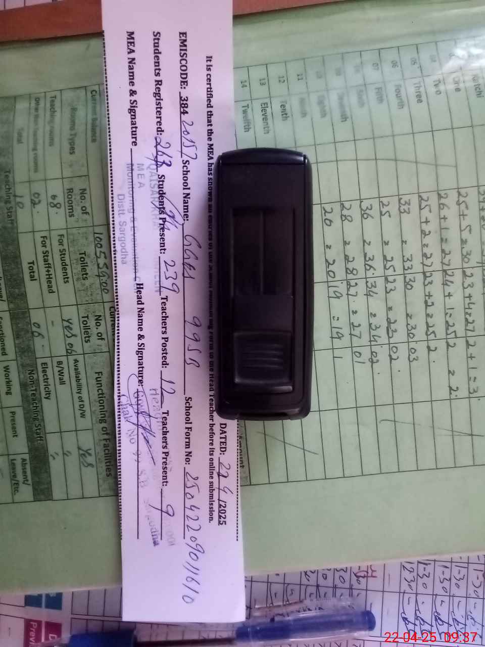 | Certified that this School was Inspected by the Undersigned MEA/DMO Today and the Information Stated Above is as Per Record. | |||||