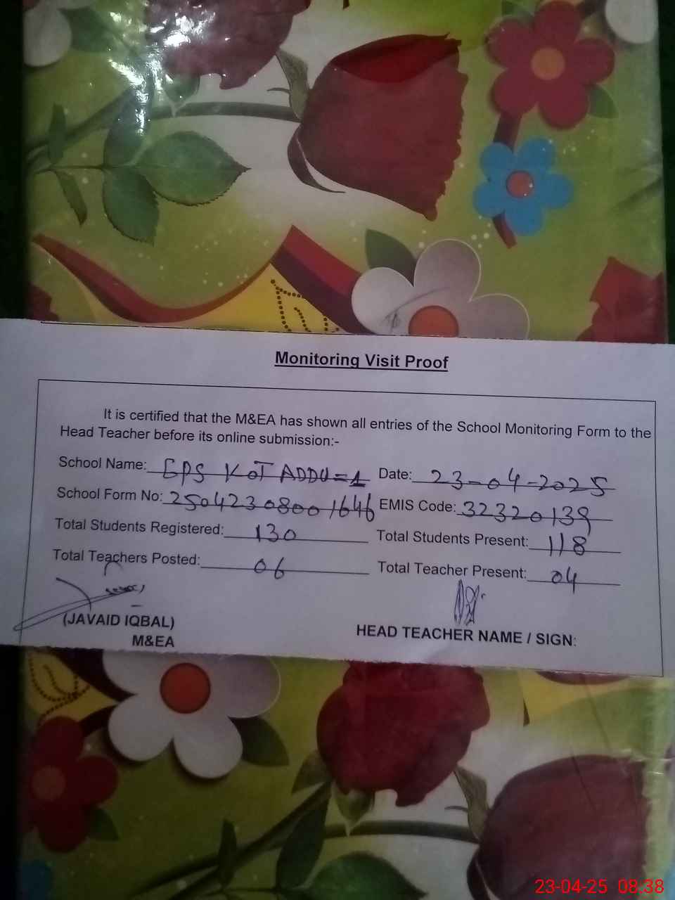 | EMIS Code: 32320139 | Name of School: GPS KOT ADU NO. 1 | |||