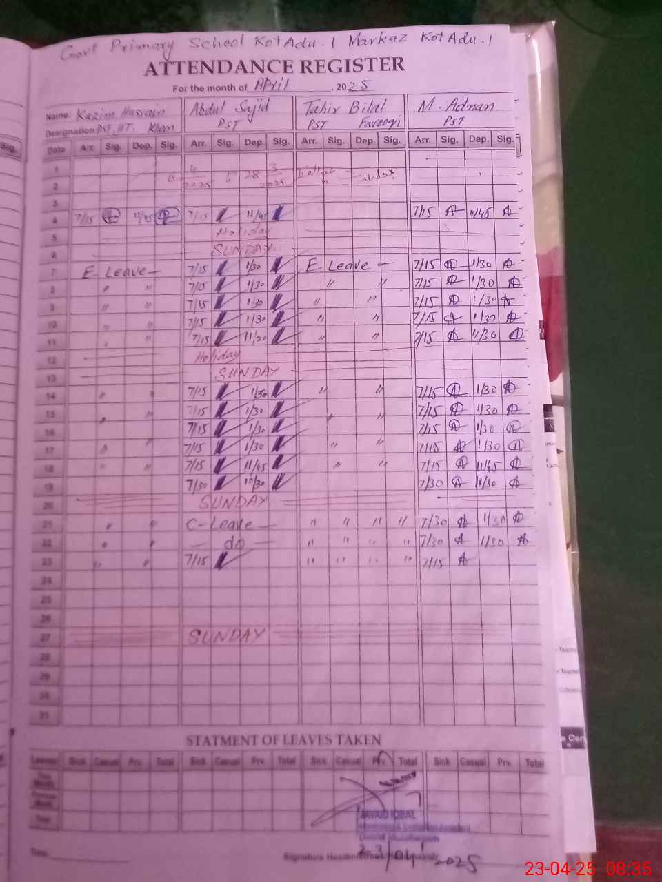 | Name: Ka**** Hu**** Kh**** Designation: (School Headmaster's/Headmistress's) PST Phone/Cell Number: 03**** |