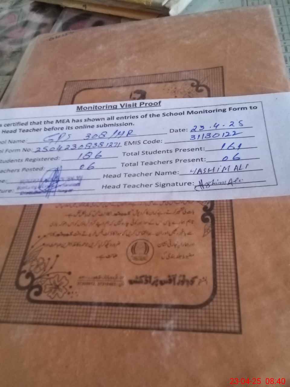 | Name: Ha**** Al**** Designation: (School Headmaster's/Headmistress's) PST Phone/Cell Number: 03**** |