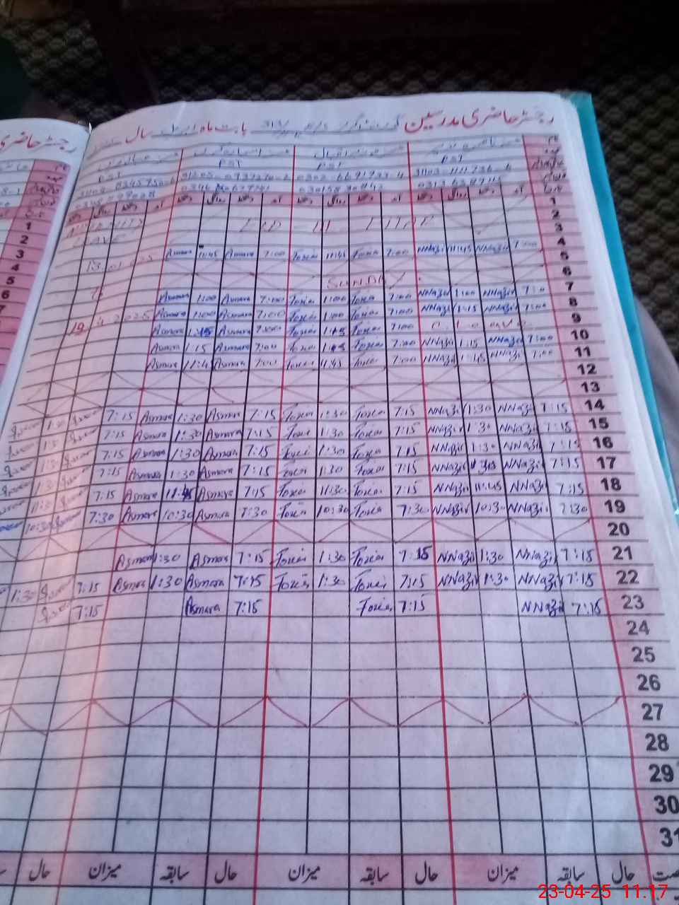 | CNIC | Full Name | Designation | R/C | Absence During Last Calender Month |