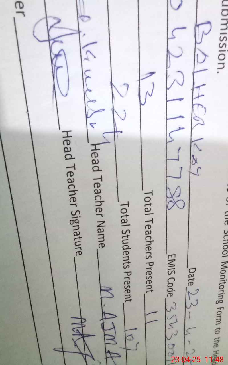 | EMIS Code: 35430014 | Name of School: GHS BALHERKE SHEIKHUPURA | |||