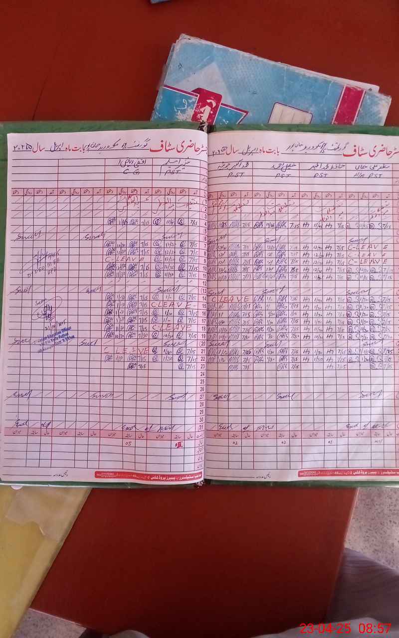 | CNIC | Full Name | Designation | R/C | Absence During Last Calender Month |