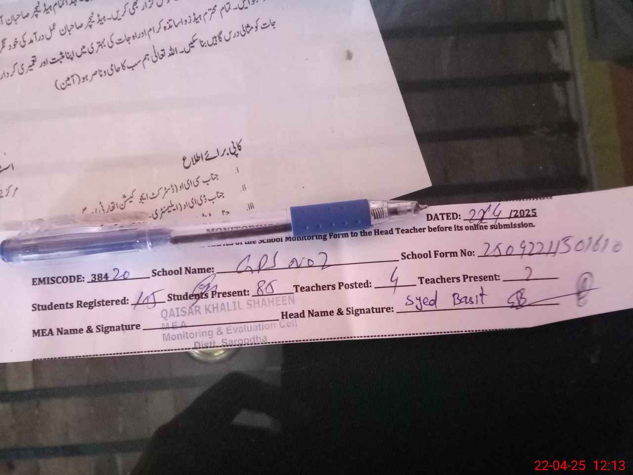 | Name: Us**** Sa**** Designation: (School Headmaster's/Headmistress's) PST Phone/Cell Number: 03**** |