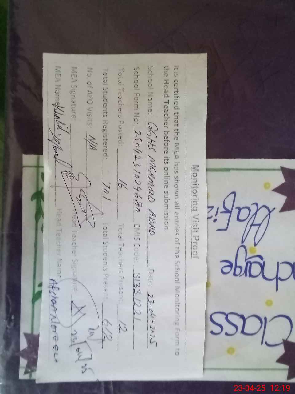 | EMIS Code: 31331221 | Name of School: GGHS MEHMOOD ABAD | |||