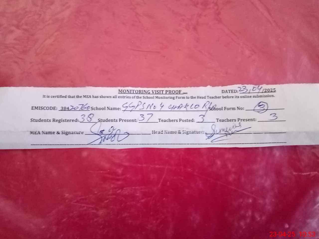 | EMIS Code: 38420760 | Name of School: GGPS NO.4 CHAK NO.10 REMOUNT DEPOT SARGODHA | |||