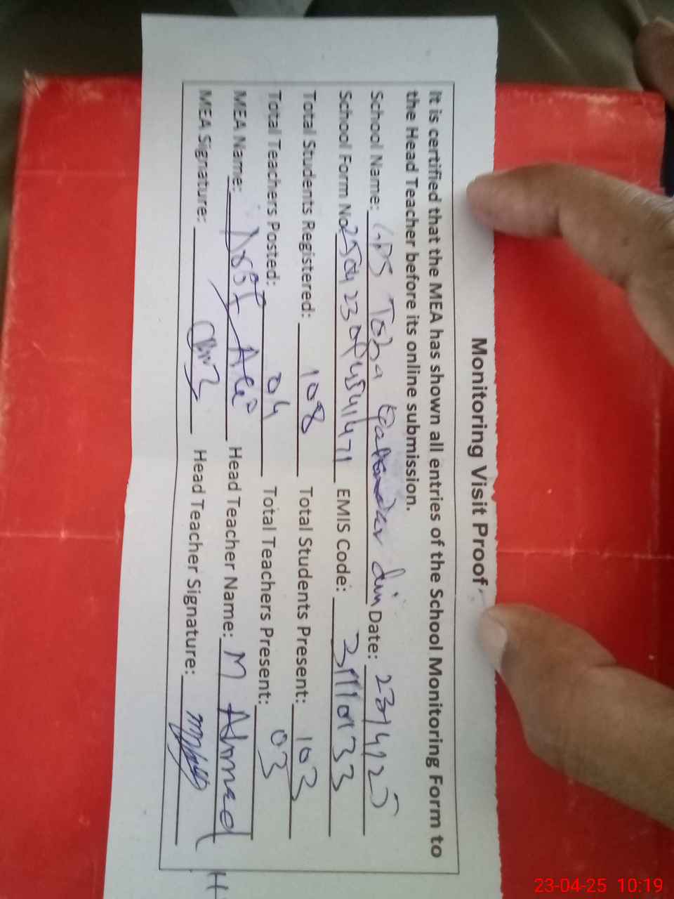 | EMIS Code: 31110133 | Name of School: GPS TOBA QUMMAR DIN | |||