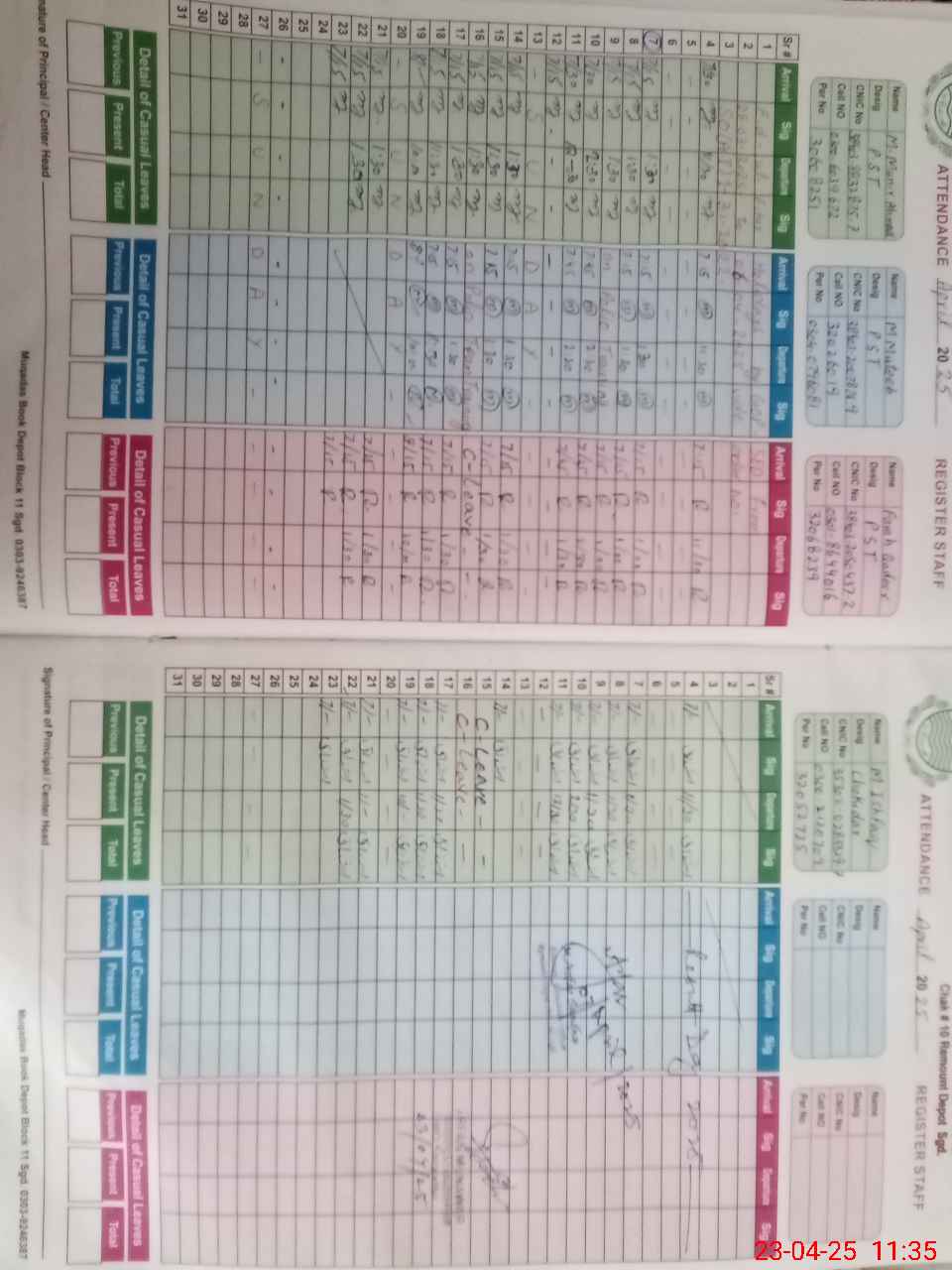 | CNIC | Full Name | Designation | R/C | Absence During Last Calender Month |