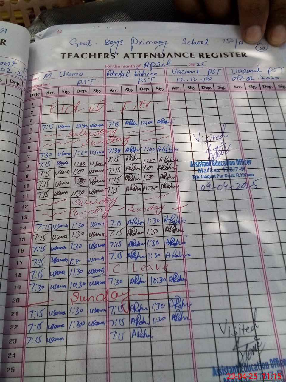 | District: RAHIMYAR KHAN | Tehsil: LIAQATPUR | Markaz: CHAK 178/7-R-MALE | Level: Primary | |