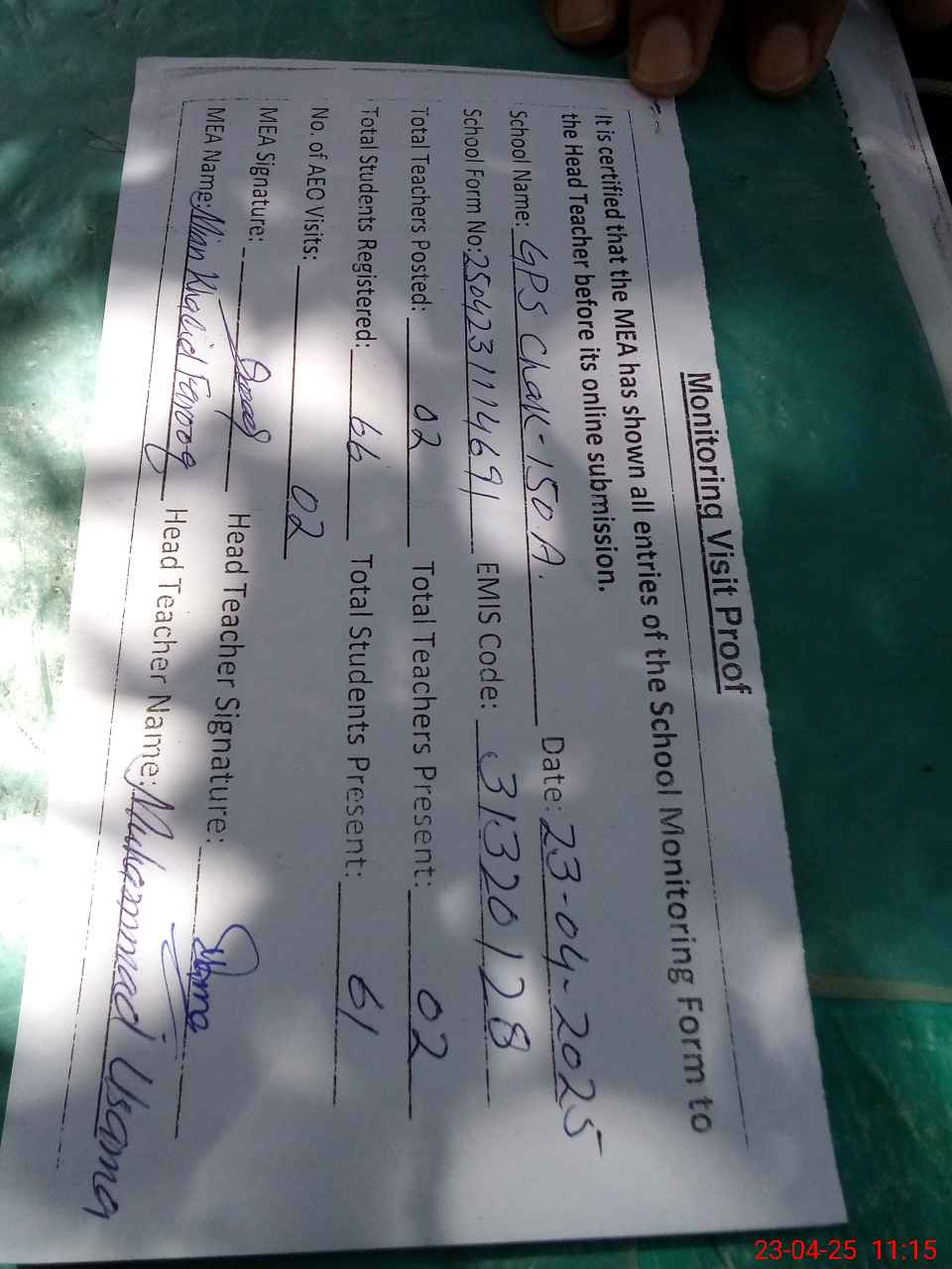 | EMIS Code: 31320128 | Name of School: GPS CHAK 150 A | |||